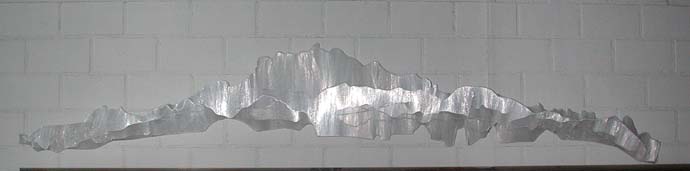 Création éphémère, « Nationalquai Panorama » possède un alter ego, « Nationalquai Veduta ». Il s’agit d’un objet, également élaboré à partir du même panorama, des mêmes lignes incarnées ici par des baguettes métalliques. Rassemblées en un fagot entièrement empaqueté dans le même feuil de plastique, elles forment une entité tout à coup bien concrète, et transportable, cependant quelque peu mystérieuse puisque l’accès, ne fût-ce que visuel, à son contenu ainsi protégé est empêché.