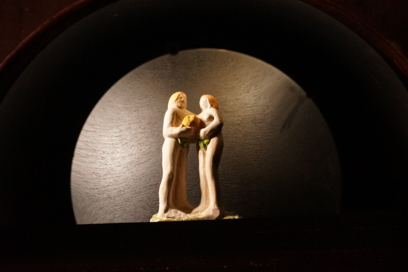 Dans la premier cylindre apparaissent Adam et Eve, Adam tenant la pomme (il y a aussi un serpent caché).