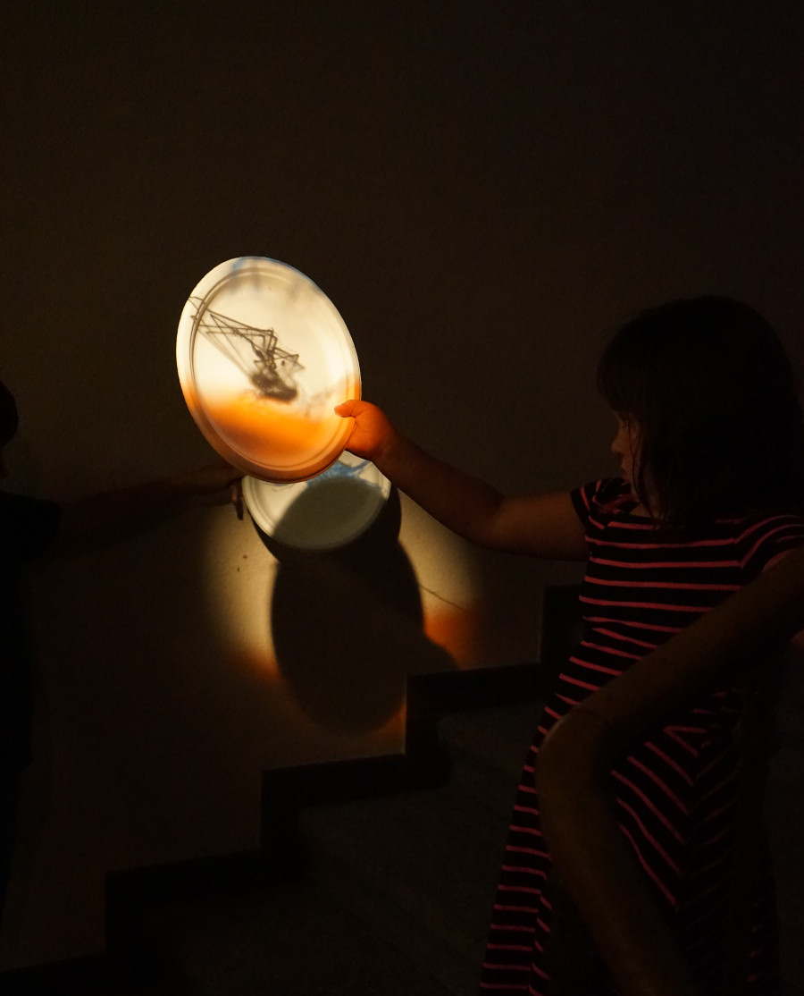J'ai gravé des dessins (un ou plusieurs par projecteur) qui sont ainsi projetés à des distances variables selon le réglage.