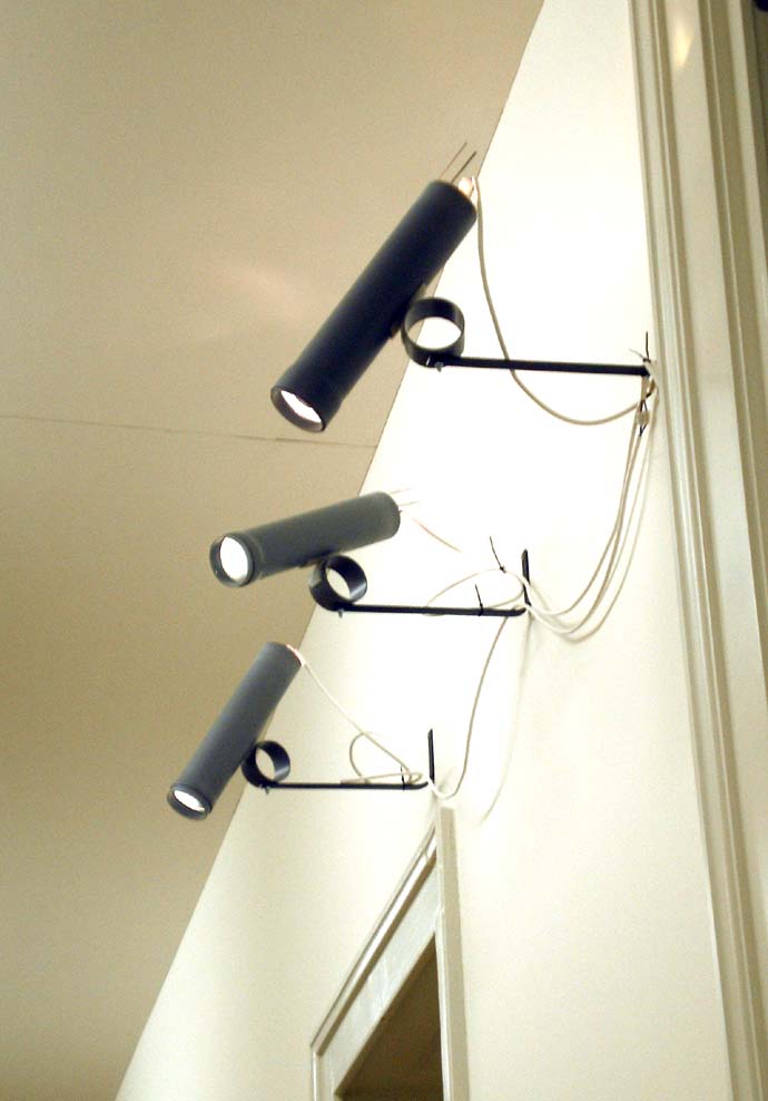Cette installation de dimensions variables rassemble un certain nombre de lampes-projecteurs, elle est ainsi modulable selon l'espace donné: